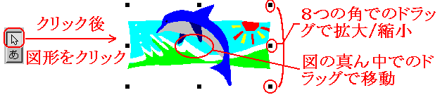 G[矢印]アイコンをクリックしてから図をクリックすることで編集操作となります。